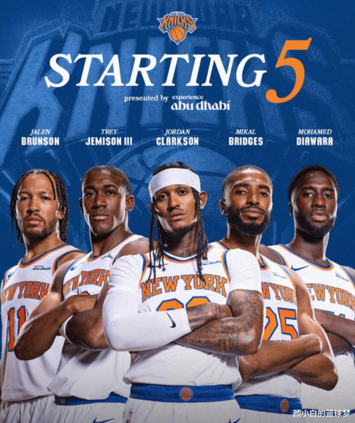 尼克斯此役的先发阵容:布伦森、布里奇斯、克拉克森、杰米森、迪亚瓦拉,克拉克森在这套阵容是被移动到三号位,球权还是掌控在布伦森手中。