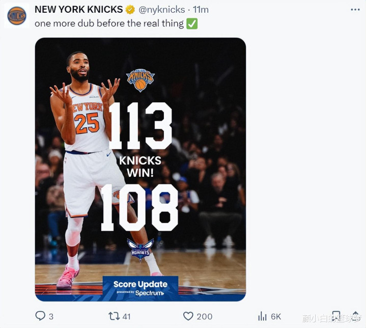 北京时间10月18日,NBA季前赛,纽约尼克斯113-108险胜夏洛特黄蜂,此役两队都不是全主力,尼克斯这边唐斯、阿奴诺比、哈特、米罗都没打,黄蜂这边三球、米勒、曼恩、约什格林都没打,但尼克斯核心布伦森鏖战足足34分钟才帮助尼克斯涉险过关。