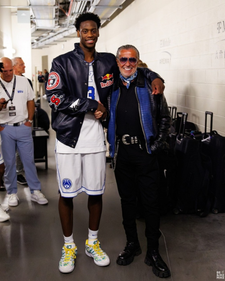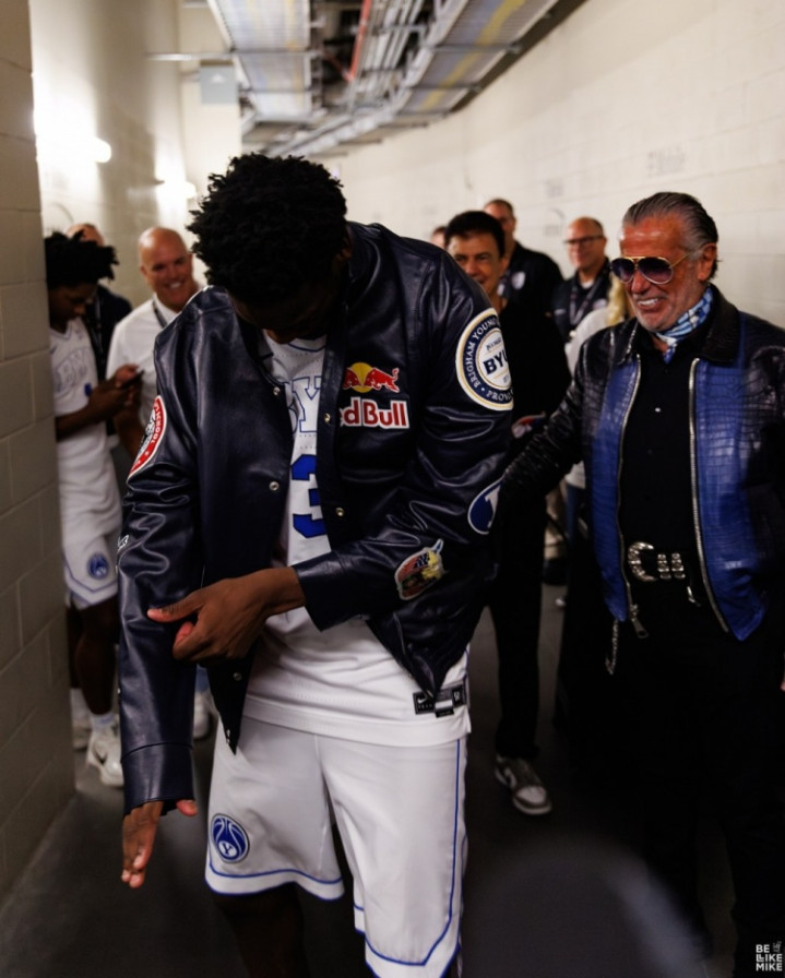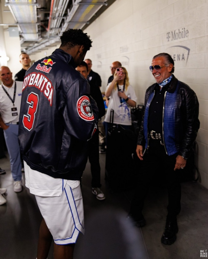 直播吧11月6日讯NCAA球星迪班萨更新社媒,晒出了与知名设计师杰夫·汉密尔顿的合照。汉密尔顿也送上了一件为迪班萨定制的重磅夹克。