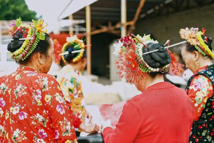 头顶上戴着「簪花围」