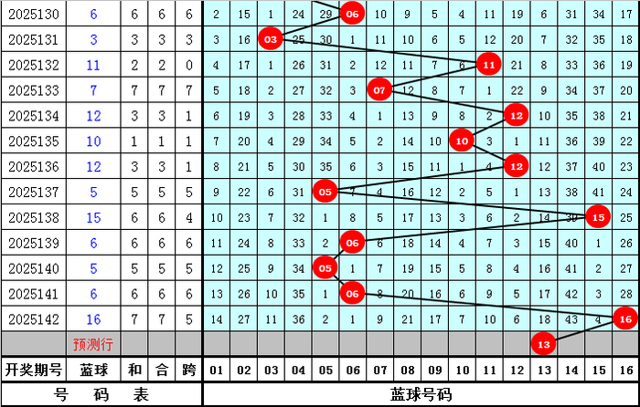 蓝球推荐:蓝球上期奖号为16,开出偶数蓝球,本期注意蓝球转向,看好奇数蓝球号码出现,参考五码蓝球02、03、05、09、13。