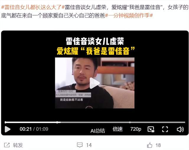 在之前的采访中,雷佳音曾提到自己的女儿,他表示:所有人看到自己的女儿都会说:太像你了,雷佳音,当时大家都认为长相像雷佳音,万万没想到是性格像,雷佳音女儿非常“皮”,性格真的太好玩了,他希望有机会可以带着孩子参与录制综艺,但始终都没有太合适的机会。