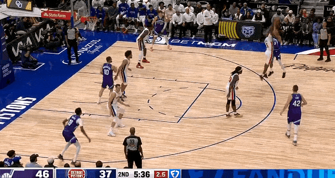 NBA常规赛,活塞对阵爵士的比赛正在进行中。