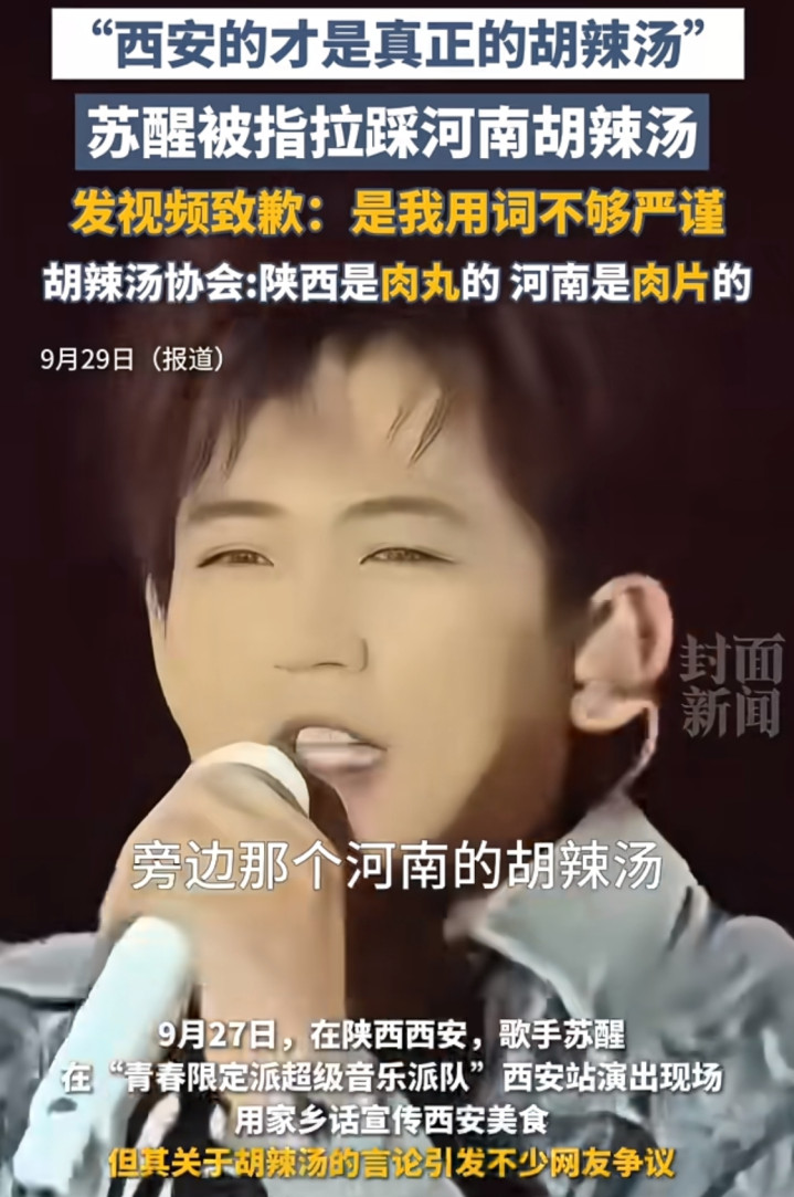 最近几天,苏醒老是上热搜,先是在西安音乐节上说胡辣汤得是肉丸款的才正宗,这话一出,河南人就急了,